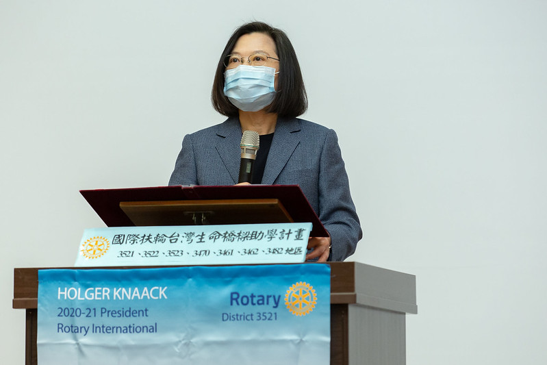 總統說,今天在場就有許多擔任教練的社友,包括擔任總教練、來自瑞安扶輪社的劉素貌社長。她除了感謝大家的付出,也強調,不只扶輪社給大家支持,政府也一定會當大家的後盾。