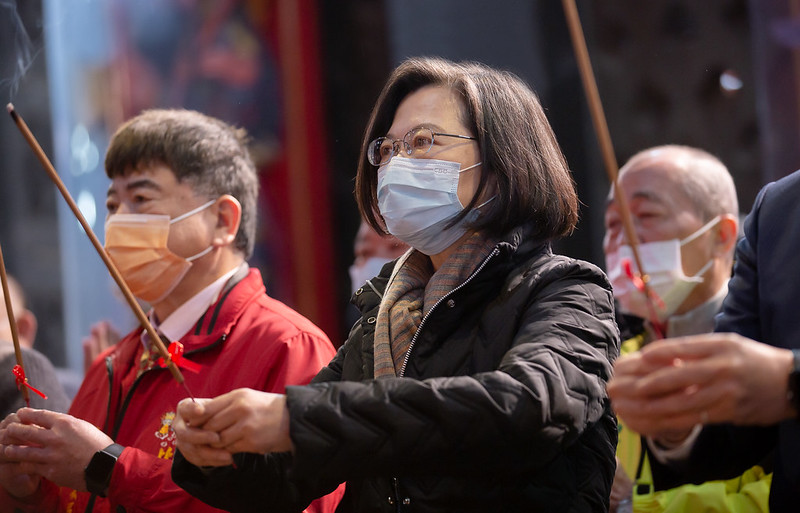 蔡英文總統今(12)日上午前往新北市三峽區參拜「紫微天后宮」,祈求風調雨順、國泰民安。