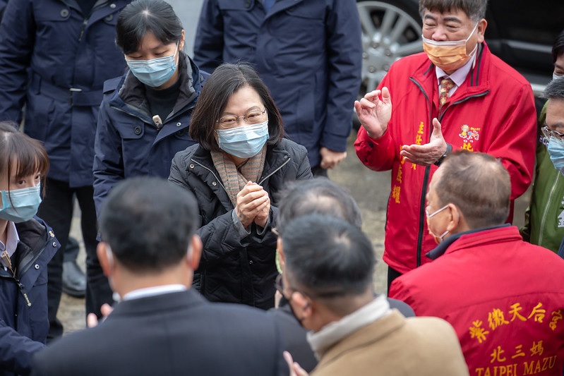 總統抵達後,以主祭官身分上香、獻花、獻果,並行三鞠躬禮,祈求媽祖保佑臺灣四時無災、國運昌隆。總統也與信眾親切問候互動,儘管天氣寒冷,但現場氣氛熱絡。