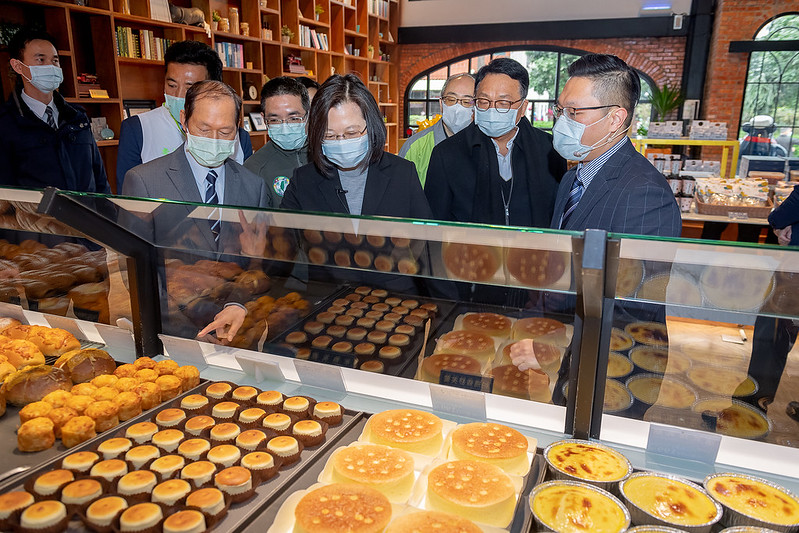 蔡英文總統今(18)日上午前往宜蘭參拜「大興振安宮」及參訪「超品起司烘焙工坊」,說明臺灣整體疫情仍穩定地掌控中,請國人不要驚慌,一定要戴口罩、勤洗手來落實防疫,也希望國人給予所有醫護人員最大的支持;她也強調,2021年,政府開始實施農民退休儲金制度,讓全臺灣百工百業退休時,都有退休金可以維持未來老年的生活。