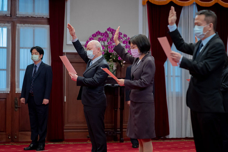 宣誓人員尚包括:公平交易委員會委員並為主任委員李鎂、國家發展委員會副主任委員施克和、海洋委員會副主任委員兼海洋委員會海巡署署長周美伍、原住民族委員會副主任委員林碧霞Afas Falah、行政院原子能委員會副主任委員張靜文、公平交易委員會委員並為副主任委員陳志民、委員郭淑貞、洪財隆。