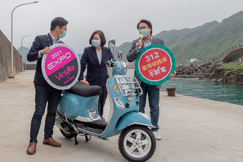 總統說,林市長從今天晚上開始,將騎偉士牌機車,挑戰從基隆到墾丁的「臺灣切西瓜」行程,為了宣傳10月在基隆市舉辦的城市設計博覽會。林市長也說,另一個任務,就是要把基隆的雨水一路往南帶到中南部,這個使命相當重要。她也祝福林市長行程圓滿、順利,從臺灣頭到臺灣尾,讓更多人看到基隆的不一樣。