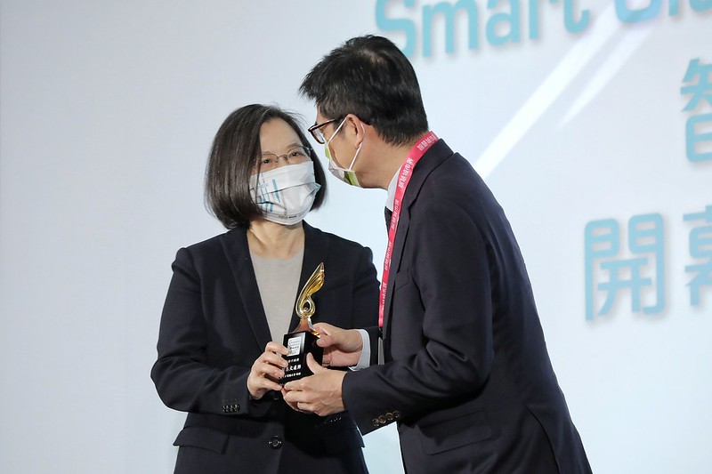 隨後,總統也親頒「2021智慧城市創新應用獎」予智慧治理組及縣市政府組得獎代表,並與現場貴賓一同進行開幕焦點儀式。