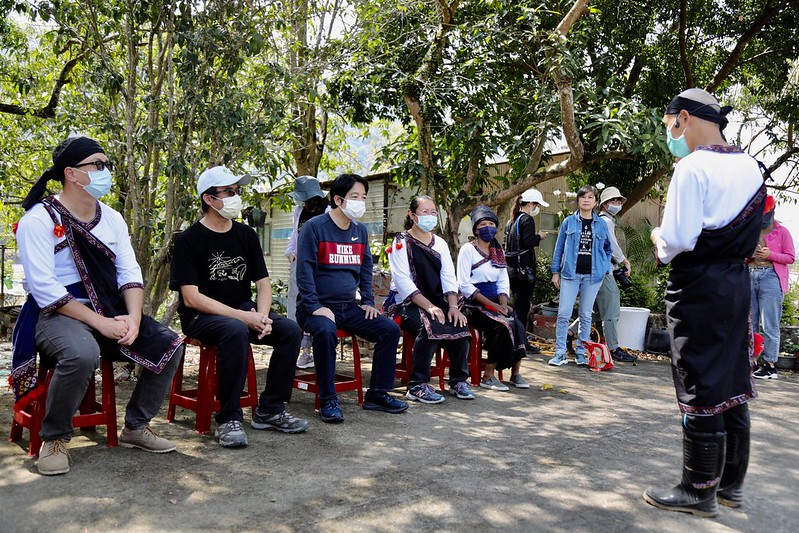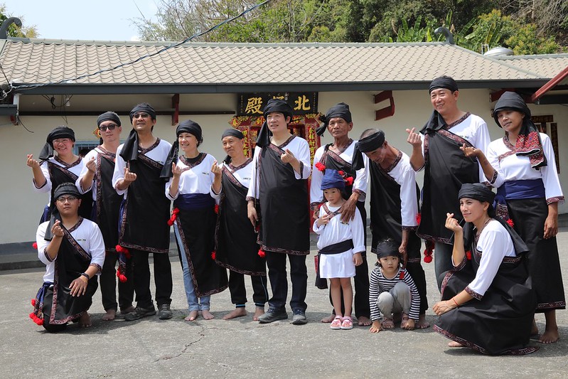 之後,副總統驅車前往北極殿參香,並換上平埔大武壠族傳統服,與當年曾接待湯姆生的荖濃黃家後代合影留念。