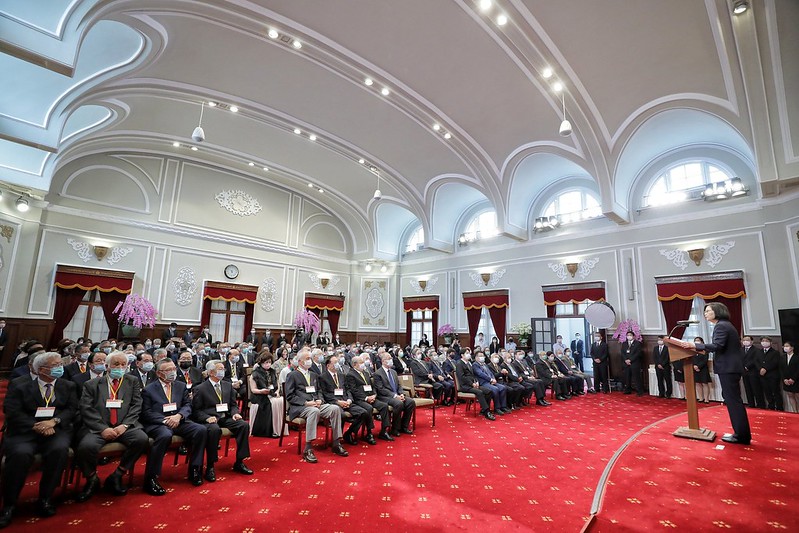總統致詞時表示,資政和國策顧問都是非常優秀且受人敬重的社會賢達,在業界也有相當豐富的經驗,是各個領域的重要領袖。她要感謝資政與國策顧問願意擔當這個重任,也感謝他們過去到現在,都不吝給予非常多務實中肯的建議,並常常針對國家政策提出非常有建設性的方針。