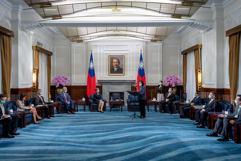 訪賓一行由外交部長吳釗燮陪同,前來總統府晉見總統,國家安全會議秘書長顧立雄也在座。