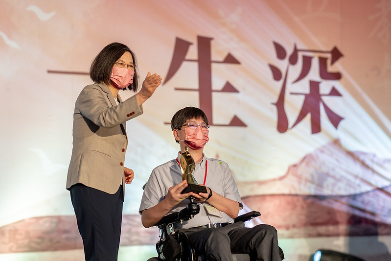 總統接著舉例,還有來自金門金城國中、投入教育工作40年的許志傑老師,許老師長期把自己訂閱的報章雜誌,帶到學校和學生一起閱讀、討論,不只提高了學生的閱讀寫作能力,也開啟孩子更廣闊的世界觀。