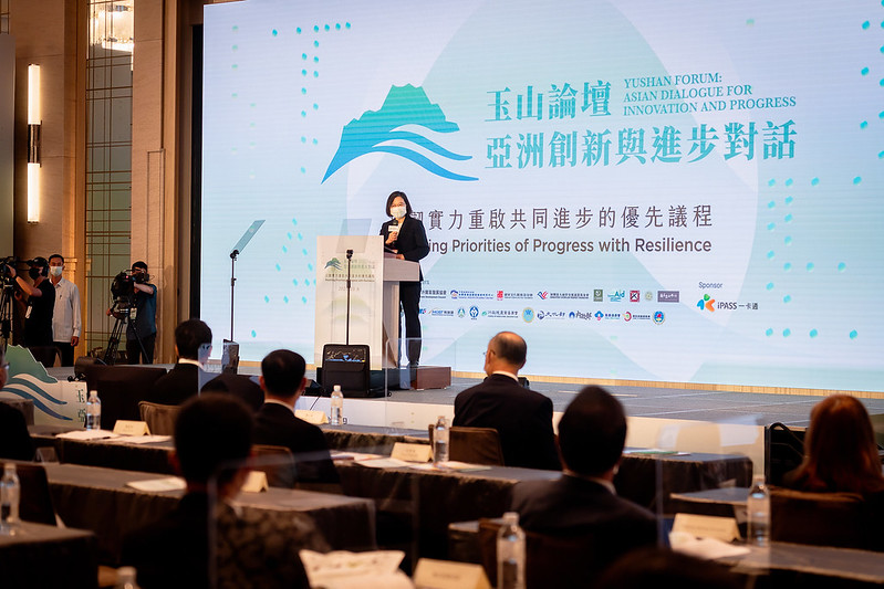 蔡英文總統今(8)日上午出席「2021玉山論壇:亞洲創新與進步對話」開幕式。總統表示,邁向後疫情時代,新南向政策將是臺灣在亞洲重要的區域政策,透過新南向政策,臺灣將強化與區域策略夥伴如美國、澳洲、印度、日本及東協國家的連結;並強調,臺灣已證明可在區域中占有重要地位,臺灣面對外來威脅,屹立不搖,是印太地區不可或缺的成員。