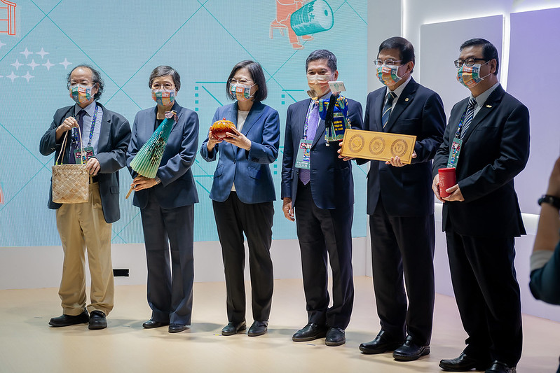 隨後,總統在主辦單位陪同下參觀展館,包括臺灣館、農遊館、客家館、日本館、原民館、韓國館、高鐵館、馬來西亞館、文化館及故宮館等,為觀光業者加油打氣。