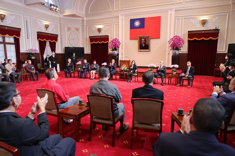 訪賓一行由台灣血液基金會董事長侯勝茂率領,衛生福利部次長石崇良陪同,前來總統府晉見總統,總統府秘書長李大維也在座。