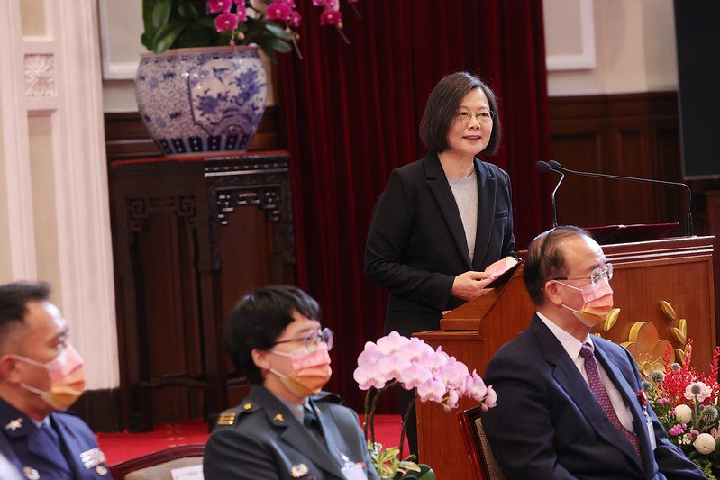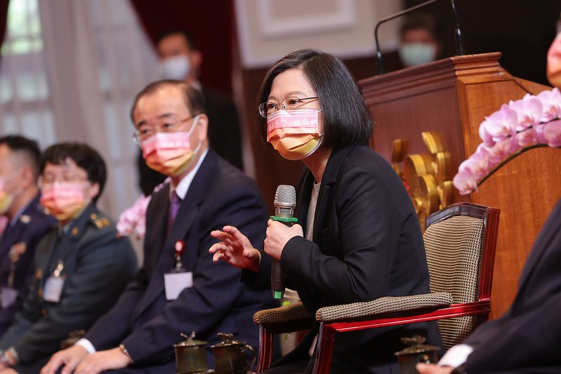 總統致詞時首先歡迎訪賓前來總統府,並感謝他們長期奉獻熱血,拯救他人的性命,即使在疫情期間,大家還是持續走進捐血站、捐血車,挽起袖子做愛心,讓臺灣的捐血率去年依然是世界第一。