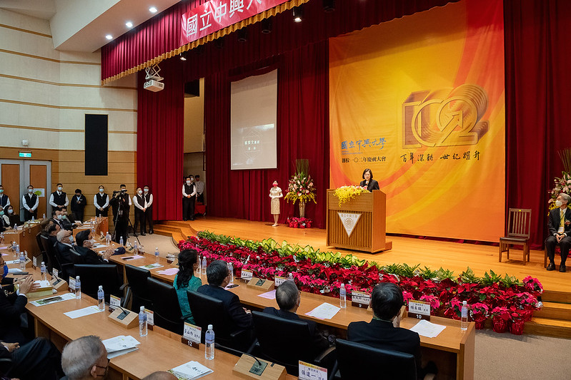 蔡英文總統今(11)日下午出席「中興大學102週年校慶」,肯定中興大學一百多年來立足中臺灣,為臺灣經濟發展、百工百業作育英才。並期許中興大學繼續努力,邁向國際一流大學的目標。