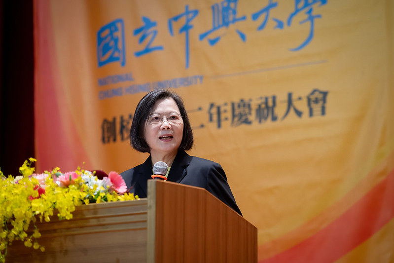 總統感謝中興大學一百多年來立足中臺灣,為臺灣經濟發展、百工百業作育英才。她也期許,未來中興大學繼續努力,邁向國際一流大學的目標。最後,總統再次祝福中興大學生日快樂,校務蒸蒸日上。