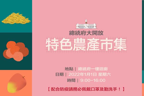 總統府1月1日(週六)上午9時至下午4時開放參觀,開放區域為總統府一至三樓,包括敞廳、大禮堂、常設展「府-建構」、「府-日常」、「府-聲音」、「府-遇見」、「府-時代」、「府-想像」、「府-印象」及「府-我在」、「萬聲之嶼特展」、郵局、交誼廳、紀念品中心及南苑庭園。