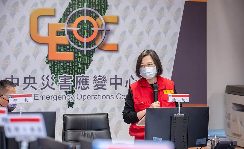 總統抵達中央災害應變中心後,首先聽取國搜中心搜救長冷家宇簡報「111年春節期間災害應變整備簡報」,隨後致詞表示,今天是大年初一,她要先向大家說聲新年快樂,並感謝所有在春節期間值班的同仁。