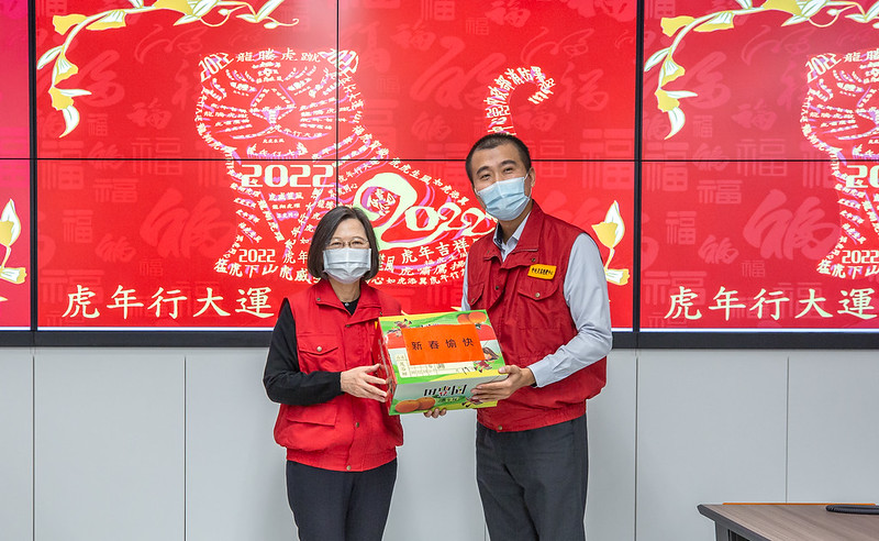 最後,總統再次感謝所有堅守崗位的同仁,也祝福大家新的一年,平安順利,虎虎生風。隨後總統也頒發慰勞金與水果禮盒,慰勉國搜中心與消防署同仁守護國人生命安全的辛勞與付出,分別由國搜中心搜救長冷家宇及消防署值日官邱景祥代表接受。