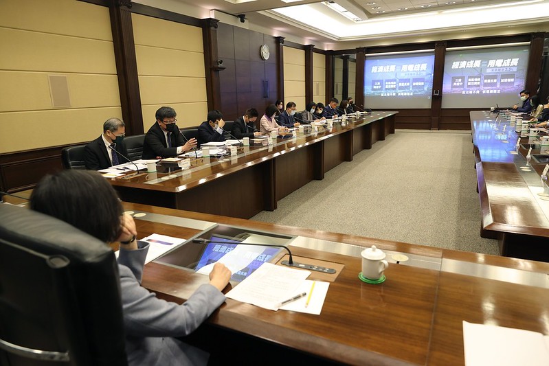 隨後,總統及訪賓共同聽取經濟部曾文生次長「經濟成長、用電成長」簡報,瞭解政府如何透過三接興建、氣源與機組靈活調度、需量反應及加速儲能等方式,維持穩定供電。國發會龔明鑫主委也補充說明2030至2050年淨零目標估算,及政府如何透過政策工具及投入科學研發,達到能源轉型的目標,並協助產業轉型、建立企業減碳能力。