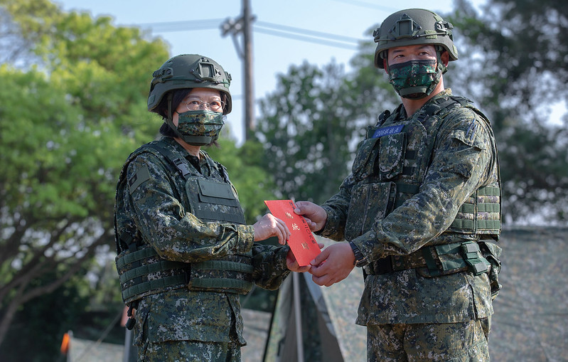蔡英文總統今(12)日下午視導「陸軍206旅教召部隊」時表示,守護國家,除了國際聲援與協助,仍須靠全民團結一致。本次教召落實全民國防的精神,貫徹「就地動員,就地作戰」原則,她除感謝全體國人一起為守護國家而努力,並請國防部務必針對此次教召的執行情況,進行滾動檢討、精進,以務實強化後備戰力,讓守護國家更有力。