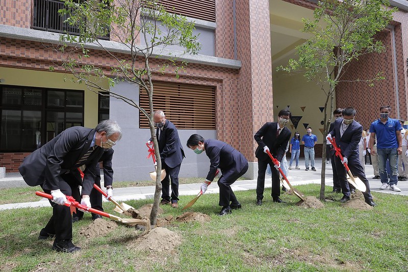 隨後,副總統前往校內228紀念牆聽取歷史背景介紹,並參觀校舍。副總統也為該校第七棟教學大樓揭牌,並與在場貴賓共同進行百年植樹活動。