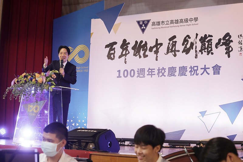 賴清德副總統今(1)日上午出席「高雄市立高雄高級中學100周年校慶慶祝大會」,感謝雄中為國家作育無數英才,並期勉同學持續秉持自強不息、實事求是、精益求精的雄中精神,追逐夢想。
