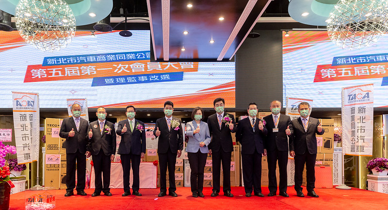 總統也感謝新北市汽車公會夥伴的付出,不但讓會員經營順暢,更確保車輛品質,讓民眾能夠安心購買,減少糾紛,創造「車商、車主和政府」的三贏局面。最後,她也祝福所有同業夥伴,生意興隆,一切順利。