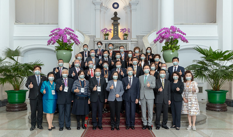 總統認為,未來,臺灣參與區域經貿、走向國際市場的腳步只會越來越快,她要拜託大家持續在各地發揮影響力,協助臺灣獲得更多的支持。