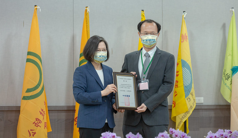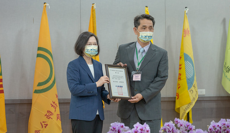 隨後,總統親頒「土木工程教育傑出貢獻獎」予得獎者徐輝明副校長及宋裕祺特聘教授。