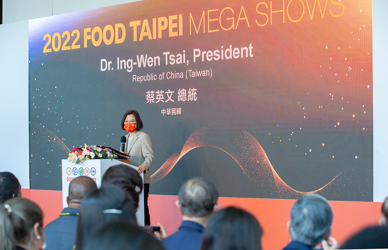 蔡英文總統今(22)日上午出席「台北國際食品展開幕典禮」時表示,今年的展覽有來自四大洲,一共23國的特色美味,都是來自我國民主盟友的優良產品,期盼國人一起支持這些「民主良品」,讓臺灣跟民主盟友的互助力量更強大,共同開創更多美好的成果。
