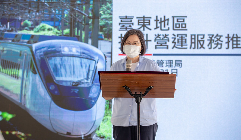 蔡英文總統今(21)日上午前往臺東視導「花東地區鐵路雙軌電氣化」及「臺東機務段功能提升」時表示,行政院在2021年4月已經正式核定「花東地區鐵路雙軌電氣化計畫」,預計於2027年10月達成全線通車的目標。她感謝交通部所有同仁的付出,也叮嚀大家,除了全力投入工作,更要確保工安,讓工程如期如質且安全地完成,一起為臺灣鐵路運輸的進步、臺東民眾「行的正義」一起加油。