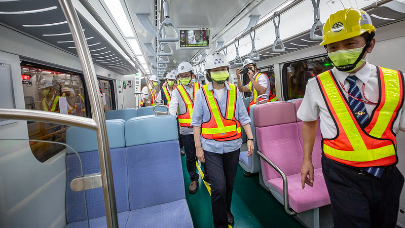 隨後,總統與現場貴賓在臺鐵局臺東機務段段長張志隆導覽下,參觀「EMU3000」及「EMU900」型車廂。