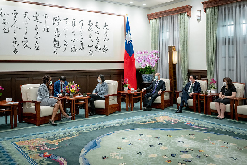 訪賓一行由外交部長吳釗燮陪同,前來總統府晉見總統,總統府秘書長李大維也在座。