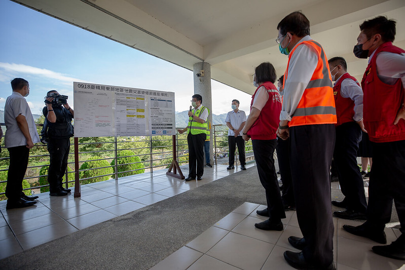總統抵達後,先聽取鐵路局長杜微簡報「地震災害搶修進度」,並進行現地視導,瞭解車站受損狀況。