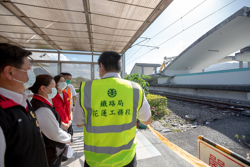 蔡英文總統今(21)日下午視察花蓮「東里車站受損情形」,感謝台鐵局、鐵道局、警消同仁、施工廠商共同投入,讓目前搶修進度超前原定期程。總統指出,政府會盡速執行後續修復計畫,讓民眾通勤可以更方便,並投入資源展開復原工作,讓民眾快速回歸正常生活。