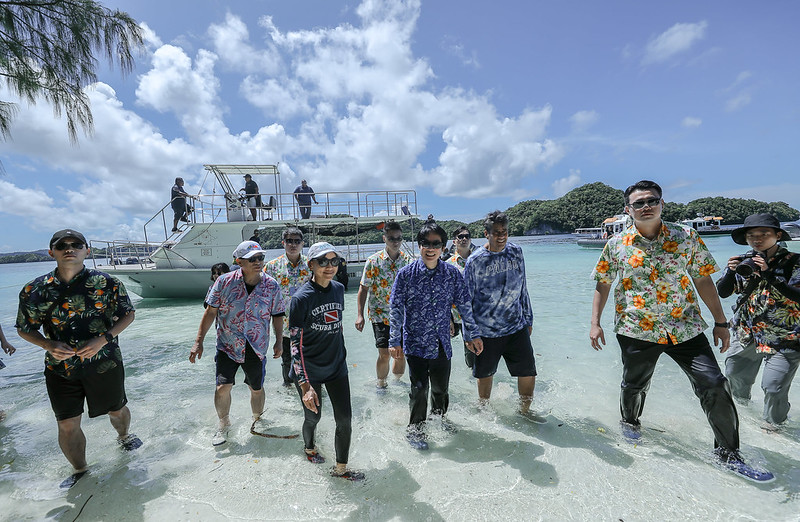 賴清德副總統「帛旅專案」今(2)日上午(臺北時間上午)在帛琉共和國惠恕仁(Surangel S. Whipps, Jr.)總統親自駕船陪同下,參訪聯合國教科文組織世界自然及歷史遺產「洛克群島南方潟湖」(Rock Islands Southern Lagoon)。