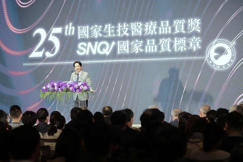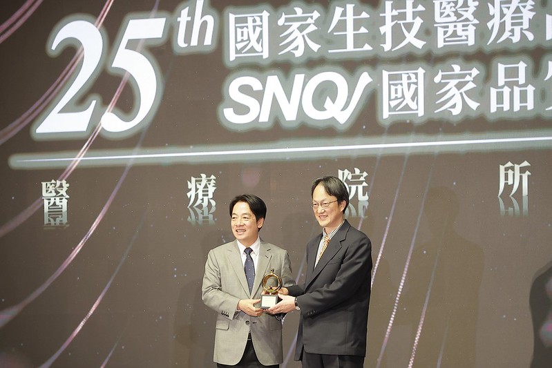 賴清德副總統今(14)日下午出席第25屆「國家生技醫療品質獎」授獎暨「SNQ國家品質標章」授證典禮,期盼醫界、醫療產業界共同努力,讓生技產業更加發展,成為兆元產業,讓臺灣走入國際、影響全世界。