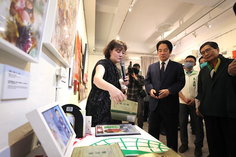 副總統抵達後,先聽取鄭南榕基金會執行長劉璐娜及董事鄭竹梅展覽介紹,瞭解鄭南榕爭取臺灣民主自由的歷史與精神。