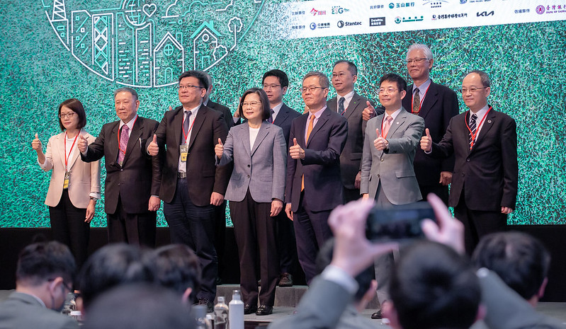 總統指出,現在全球正加速邁向「2050淨零轉型」,臺灣也急起直追。從2016年她上任以來,就開始推動能源轉型,為臺灣未來30年的發展打下基礎。這是一場長期的耐力賽跑,將近7年來的努力,已經逐漸看到成果。