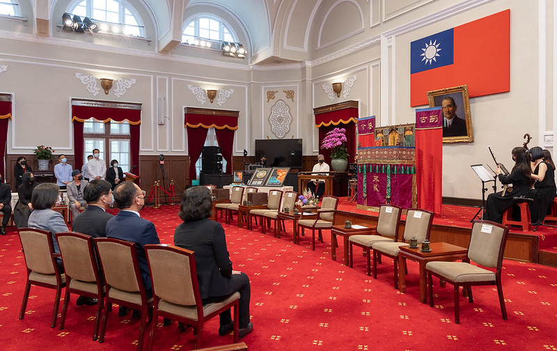 總統到場後,首先欣賞淡蘭古道唱片專輯團隊演出。隨後致詞時表示,今天的總統府真的很不一樣,記得小時候看布袋戲,表演者的年紀都稍長,但今天舞台上的表演者無論男女都很年輕,這也代表百年技藝的傳承,讓傳統的表演有年輕及更現代的元素,她覺得滿好的。此外,表演的木偶很小,必須仔細看才能看出動作,可見在後面演出的人動作之細膩,令人歎為觀止。
