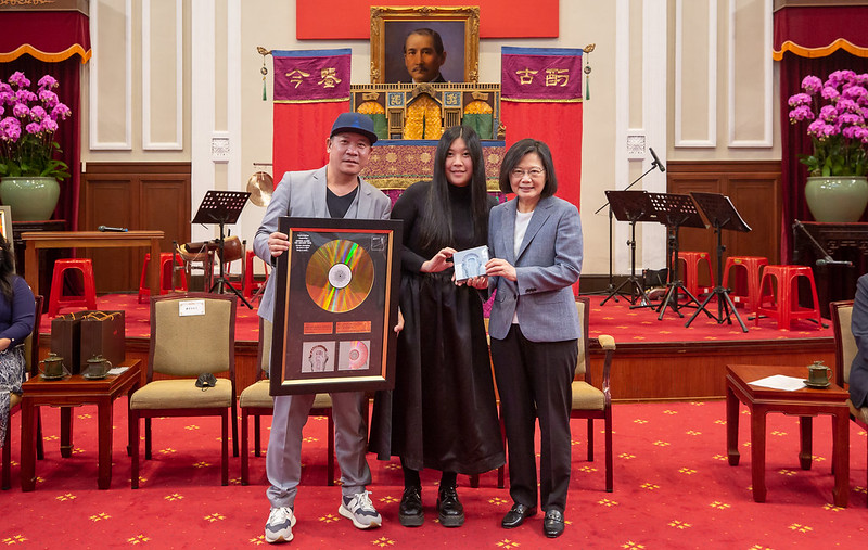 蔡英文總統今(11)日上午接見「第65屆葛萊美獎淡蘭古道唱片專輯團隊」,恭喜蕭青陽老師與女兒蕭君恬設計師,攜手合作贏得葛萊美獎「最佳唱片包裝獎」,並感謝淡蘭古道唱片專輯團隊,讓世界各地音樂人,了解臺灣豐富的文化。她也談到,政府積極投注資源,支持在地內容開發,目標讓臺灣文化內容可以加速主流化、國際化,並盼年輕世代能多接觸、及一起支持臺灣的藝文產業。