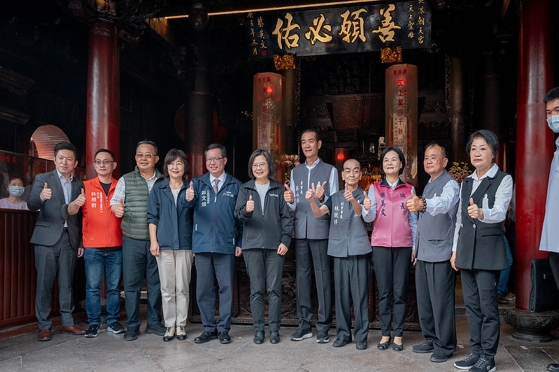 隨後,總統前往北港朝天宮參香,祈求媽祖庇佑臺灣風調雨順、國泰民安,並揭贈匾額「善願必佑」。