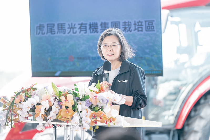 總統致詞時表示,推動臺灣農業轉型是政府一直努力在做的事情。在她的第一個任期,政府就訂定了「大糧倉計畫」,來發展臺灣有機農業,同時提升國產糧食自給率。今天是世界地球日,大家來到計畫的示範據點「馬光有機集團栽培區」,一起見證「大糧倉計畫」的成果。