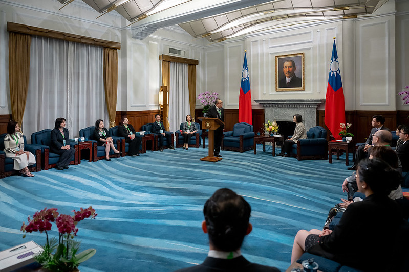 總統致詞時首先歡迎訪賓來到總統府。上個月,她完成疫情後第一次出訪,在過境美國期間,深刻地感受到美國僑界的熱情和影響力。