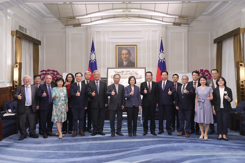 世衛行動團一行尚包括無任所大使吳運東等,由團長暨衛福部長薛瑞元率領,前來總統府晉見總統,國家安全會議秘書長顧立雄、外交部長吳釗燮等也在座。