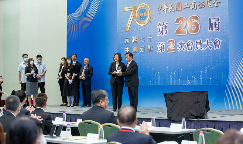 總統提到,今年3月,吳東亮理事長帶領會員,與行政院陳建仁院長進行工商早餐會,提出許多建言,讓政府政策能更貼近產業界需求。