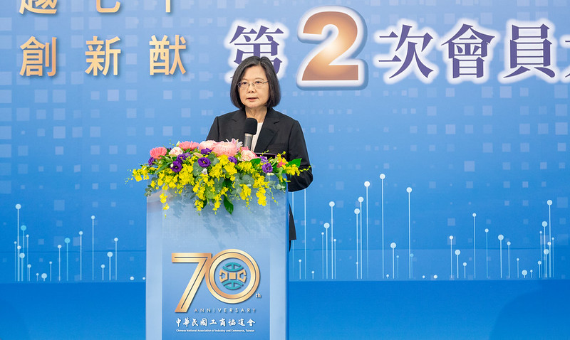 總統致詞時表示,今天現場有許多熟悉的先進好朋友,去年10月,工商協進會成立滿70週年,她和大家一起慶祝。藉這場會員大會,她要再次感謝工商協進會長期擔任政府和業界的橋梁,對產業的進步發展做出貢獻。