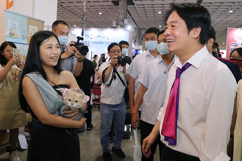 賴清德副總統今(9)日下午出席「2023展昭台北寵物用品展」,本次展區現場集結上百家寵物用品廠商,許多民眾帶著自家寵物參加活動。