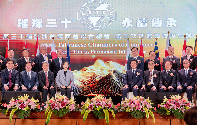 總統表示,臺灣的產業發展,不僅要掌握世界趨勢,更要在國際舞臺上發光發亮。亞太是世界未來經濟的重心,這些年來,政府積極推動「新南向政策」,已經陸續展現成果。去年,臺灣對新南向國家貿易額達到1,803億美元,對新南向國家出口額達到969億美元,這兩項都是史上最高。