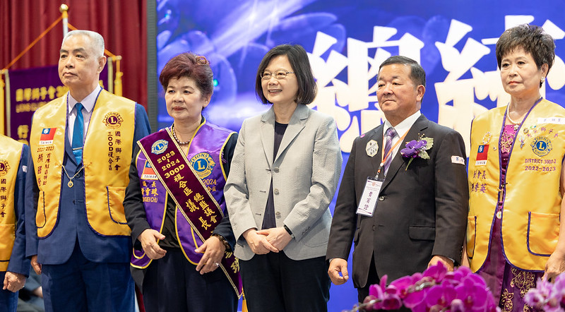 總統致詞時表示,今天很高興跟大家一起見證,許雪珠姐妹就任300D複合區的議長。新任的許議長在2020年時來過總統府,當時她就覺得許議長台風很好。她也知道,許議長非常熱心公益,在擔任300-C3區總監的時候,就帶領將近數千位獅友,進行各項社會工作。相信300D複合區在許議長的帶領下,一定可以替彰化、南投地區,帶來更多溫暖的服務。