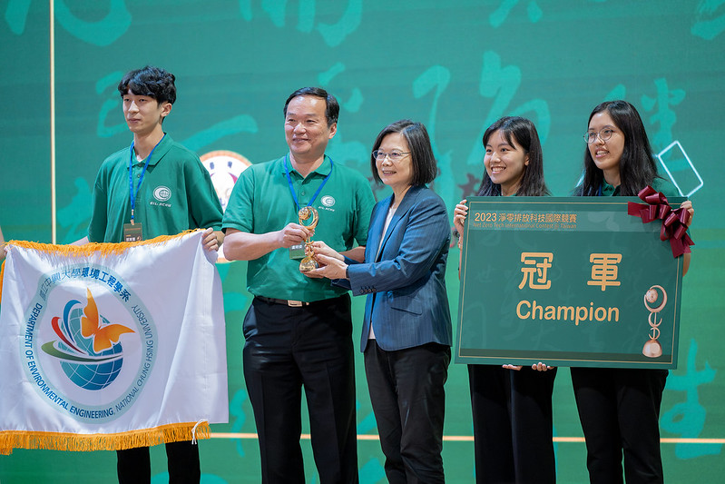 蔡英文總統今(22)日下午出席「2023淨零排放科技國際競賽決賽」時表示,這項競賽正好提供一個平臺,吸引世界頂尖大學師生,一起集思廣益,透過創意和技術,為淨零轉型提供解方,具有重大的意義。並指出,突破性的淨零技術是淨零轉型的重要推力,更是等待開發的「淨零藍海」。政府已提出「淨零科技方案」,規劃每年投入至少150億元,加速技術落地應用及前瞻科技研發,積極為臺灣布局未來,接軌國際趨勢,確保下一個世代的國際競爭力。