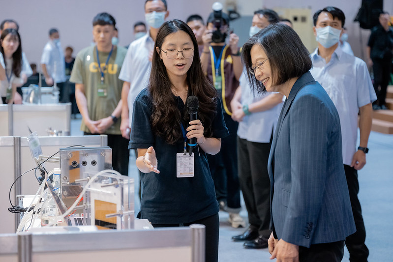 總統恭喜得獎團隊,也恭喜所有入圍決賽的隊伍。並表示,這項競賽的參賽者,來自10個國家、40所大專院校,共有146個團隊。大家能夠脫穎而出,入圍決賽,已經是非常不簡單的成就。稍早,她參觀了大家的作品,也看到許多企業、研究單位展出各項淨零技術。大家的積極投入,都將為臺灣走向2050淨零轉型,打下重要的基礎。